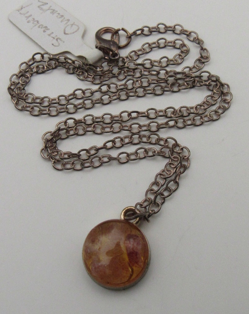 Strawberry Quartz chip pendant on a 20” bronze chain