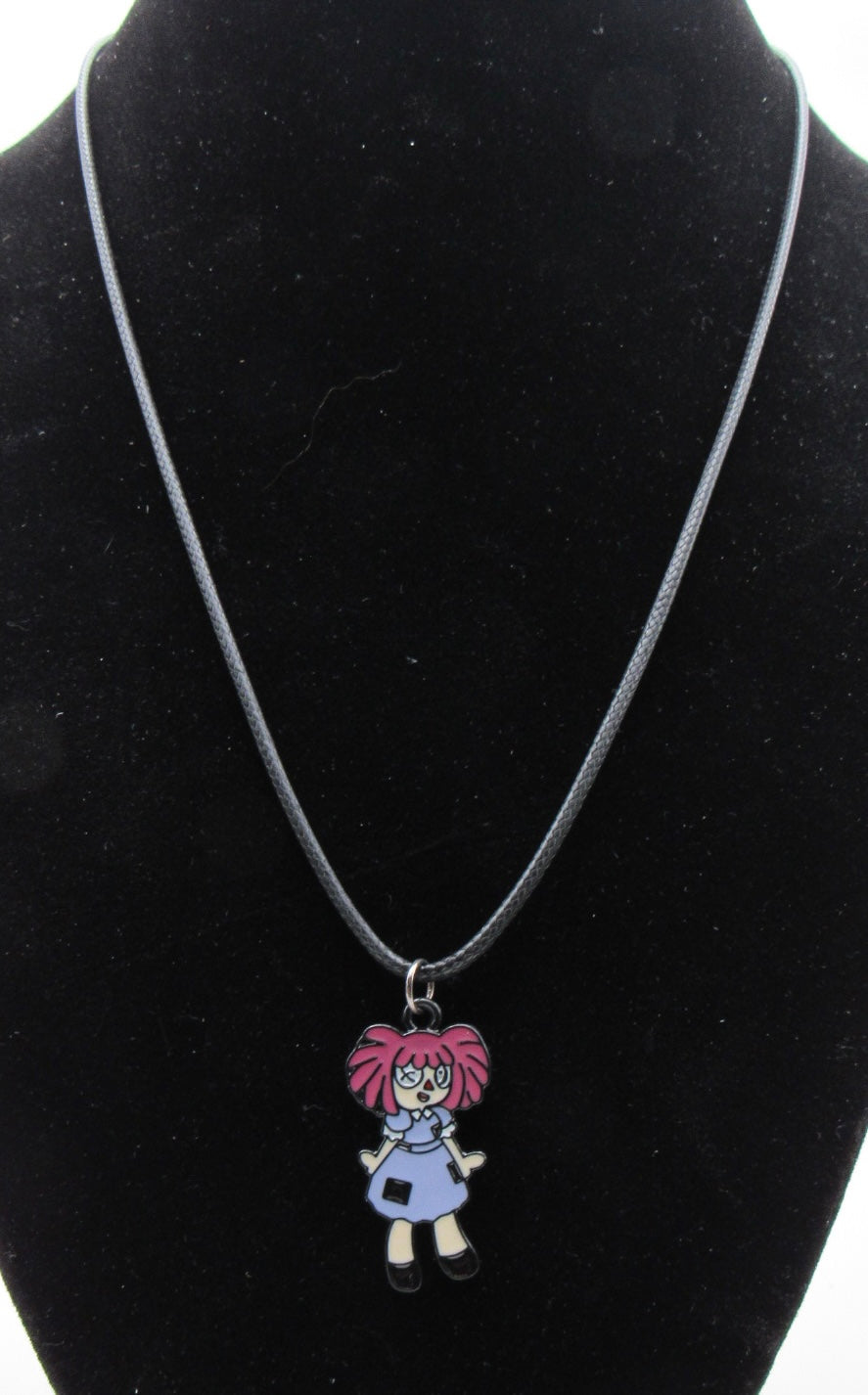 Character pendant on a 17” black waxed cord with extender