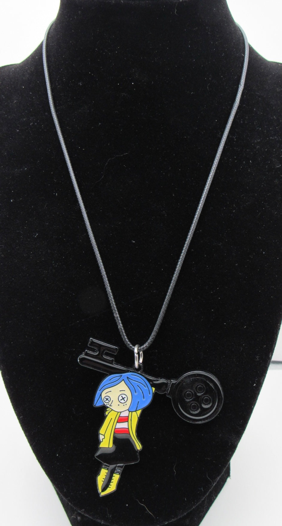 Character pendant on 17” black waxed cord with extender